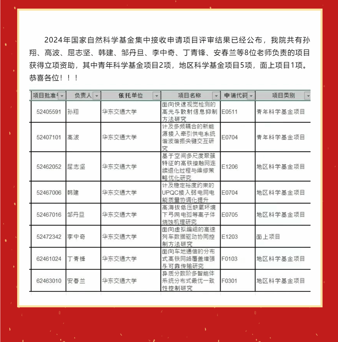 喜报 | 祝贺我院8个项目获2024年度国家自然科学基金立项资助