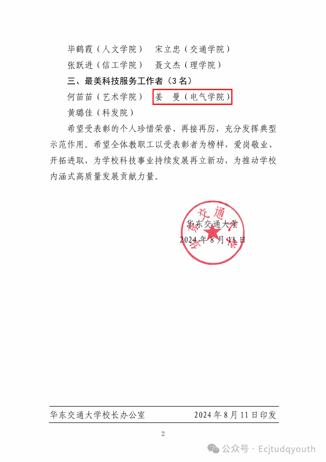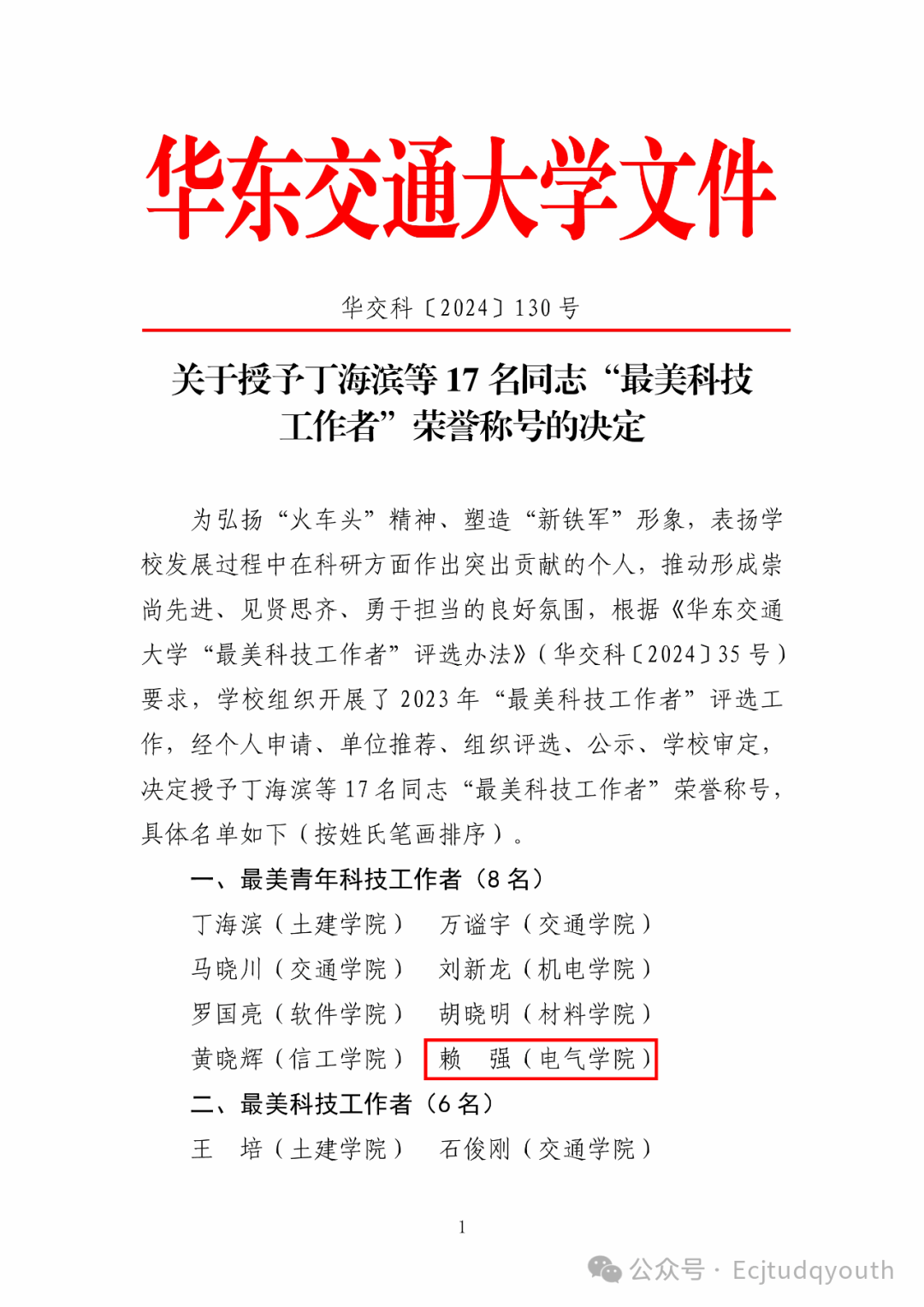 喜报|我院赖强、姜曼教师获评“最美科技工作者”荣誉称号