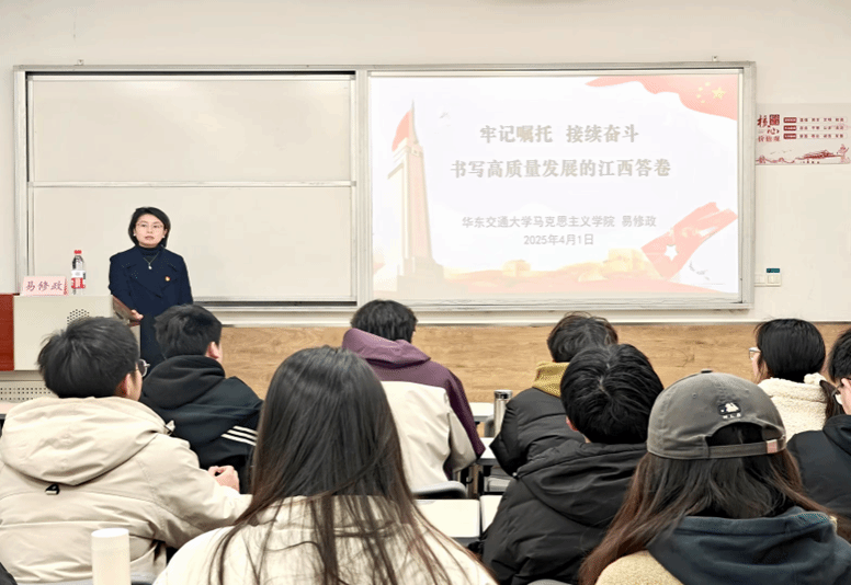 2025年4月1日,电气学院分党校第二十四期发展对象党课培训在教25栋举行。马克思主义学院易修政老师为学员们讲授党课第六讲——习近平总书记考察江西的重要讲话精神。
