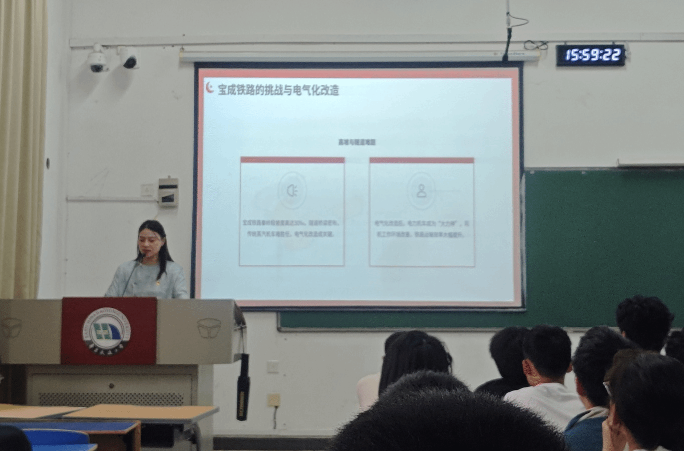 为传承和弘扬“红色铁路精神”,让同学们深入了解新中国第一代电力机车女司机的奋斗历程,从历史机遇、成长蜕变、职业荣光到精神传承,展现铁路女性突破性别壁垒的红色传奇。5月15日,电气学院“红色电磁场”宣讲团成员董雨晴老师在逸夫楼开展了“讲好红色铁路故事,赓续红色铁路基因”主题宣讲。