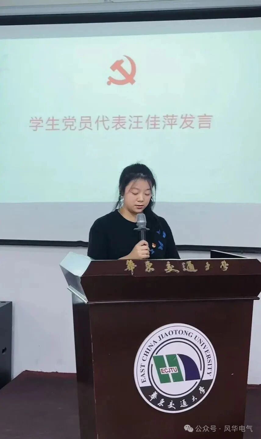 学生党员代表汪佳萍发表讲话。作为党员先锋,她坚定重申:党员身份不是彰显的“名片”,而是必须践行的“誓言”。她表示这份执着坚守,是对党员初心最深刻的诠释。在奋进的征程中不断自我鞭策、自我锤炼、自我超越,为全面建设社会主义现代化国家注入先锋动能。