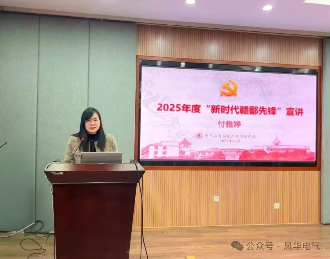 为积极宣传“新时代赣鄱先锋”先进事迹,发挥先进典型示范带动作用,弘扬实干作风,切实将先进典型事迹的精神力量转化为迎难而上、敢作善为的实际行动,12月4日,学院党委邀请2025年度“新时代赣鄱先锋——群众身边好党员” 付雅婷同志为全体教职工作宣讲报告。