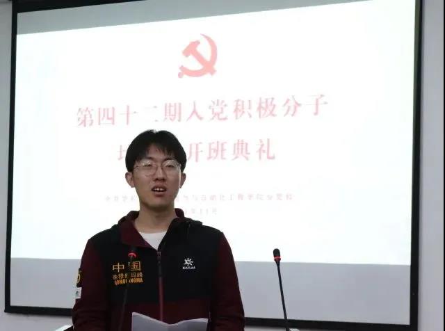 19级电力1班的张鹏晖作为入党积极分子代表发言。他首先代表所有学员向校党校,学院分党校表达感谢,并表示会珍惜此次培训机会,端正学习态度,遵守培训纪律,从各方面严格要求自己,树立党校学员的良好形象,用实际行动向党组织靠拢。