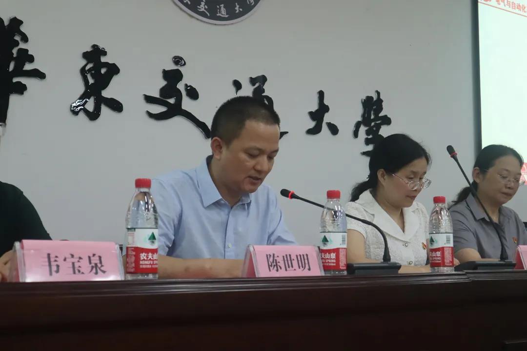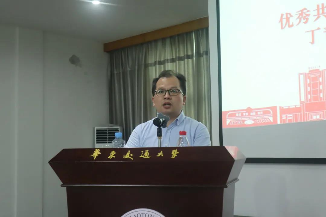 优秀教工党员代表丁青锋结合自身教学与工作实际,表示要发挥党员先锋模范作用,赓续红色血脉,弘扬天佑精神,担当时代大任,夯实自身师德师风建设,为“百年交大梦”贡献出自我的一份力量。