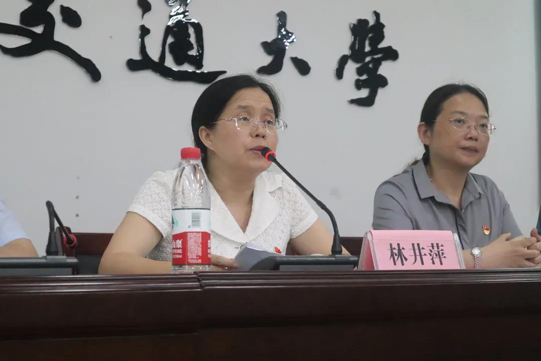 会上,林井萍结合我国和我校的“七一”表彰,指出英雄来自于人民,并对我院的党建工作给予肯定。她强调党员发展和支部建设要做到“三个一”:坚持党员标准,绷紧“一根弦”;砥砺来时征程,守住“一颗心”;不畏前路艰难险阻,担好“一条梁”。同时全体党员要坚定理想信念、牢记初心使命、植根人民群众,以蓬勃的朝气和昂扬的斗志迎接建党百年和建校五十周年。