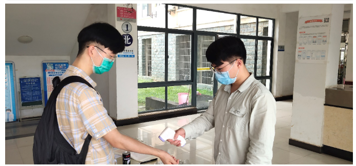 得知志愿者招募的消息后,黄振立即递交申请报名志愿服务。他认为这不仅是为同学服务,也是在坚守抗疫的最后一道关口。他在学生返校的“最后一公里”值守,为进入寝室的返校学生测量体温、消毒行李、登记信息,作为抗疫战线的“神经末梢”,确保入住寝室的每一名学生的身体健康,核实入寝人数方便抗疫的信息化管理,实时监测体温异常的学生。