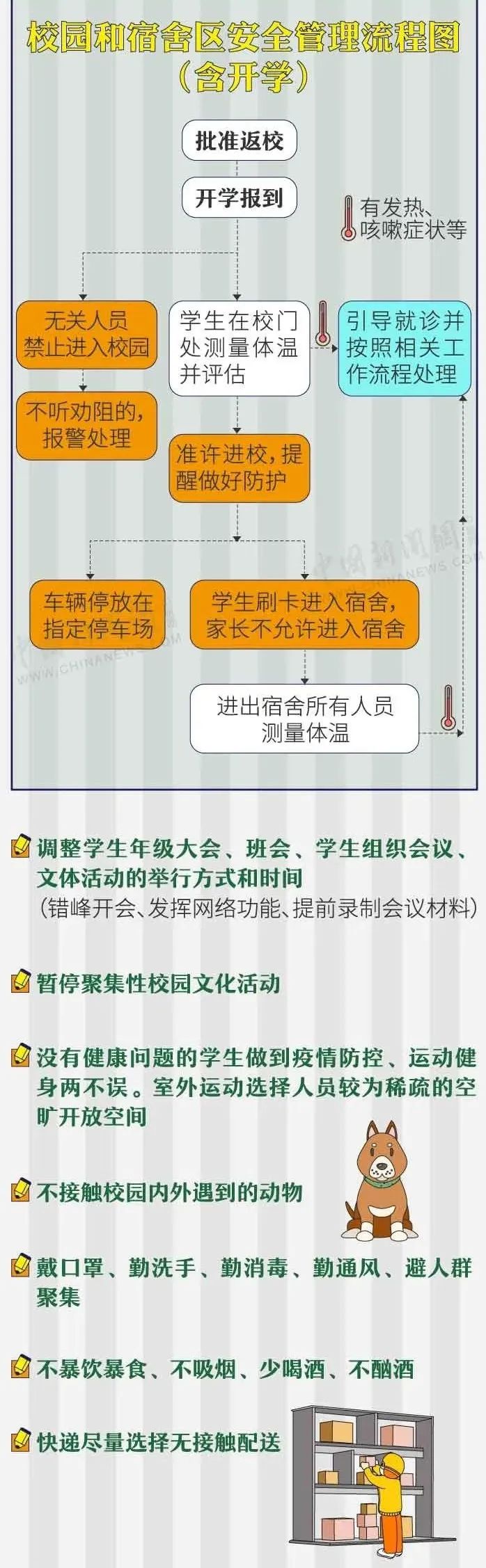 与疫情一战到底!如今全国各地确诊增量接连多天为0,疫情防控进入关键时期。越来越多的省份逐渐开始计划开学,而高校学生返校,数量庞大且牵连跨省份迁移,不安全指数较大。因此,在通知开学时,所有学生都应备好相应物资,途中做好健康防护,到校后主动隔离14天。开学前,在家要坚持学习不放松、坚持体育锻炼增强自身免疫力、保持良好心态以待返校。