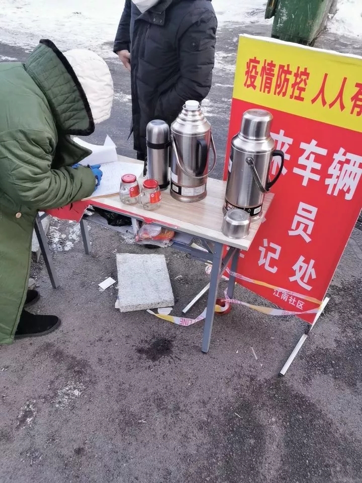 A:我们为社区门口站岗的工作人员送去红糖姜水,看到他们在寒风中捧着热腾腾的杯子,满脸都是幸福感,仿佛驱走了严寒和疲惫,小小的一杯红糖水能让他们在奉献中感到温暖。