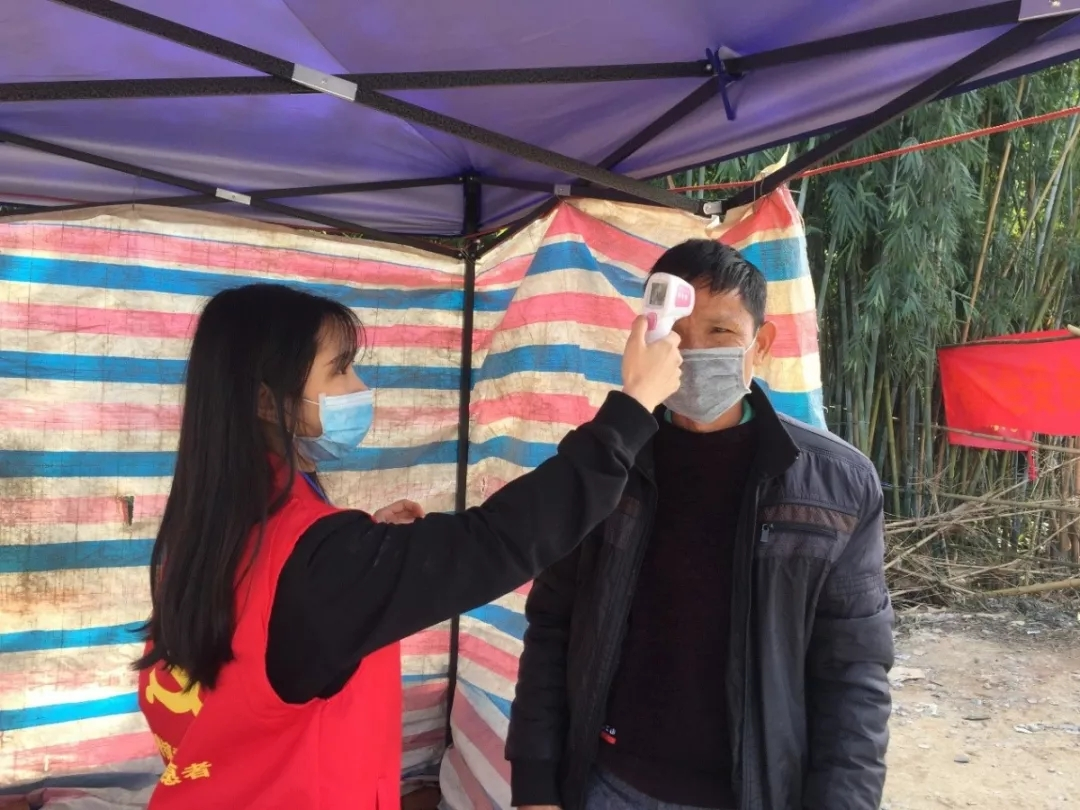 居住在广东省肇庆市高要区莲塘镇的张梓然,在全国各省市拉响防疫警报后,自愿请战,主动为当地出入村镇人员进行登记和测量体温。