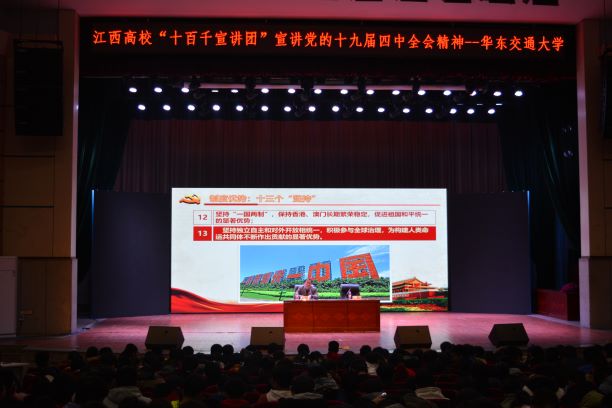 为深入学习贯彻党的十九届四中全会精神,12月8日,yl6776永利集团党的十九届四中全会宣讲团成员、马克思主义学院副院长陈晓江老师在南区礼堂面向电气学院全体学生开展“江西高校‘十百千宣讲团’宣讲党的十九届四中全会精神”主题宣讲会。宣讲会由电气学院党委副书记王巍主持。