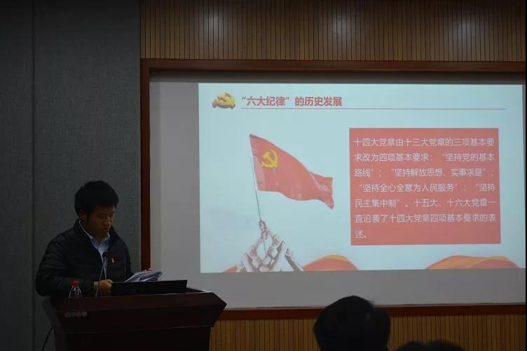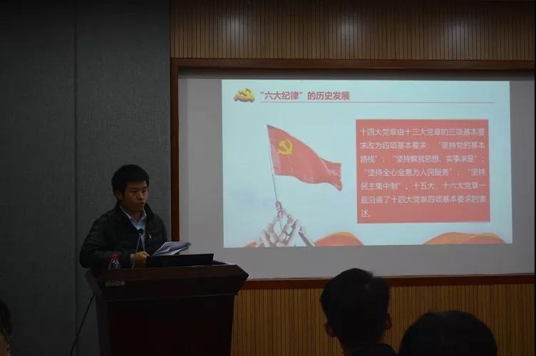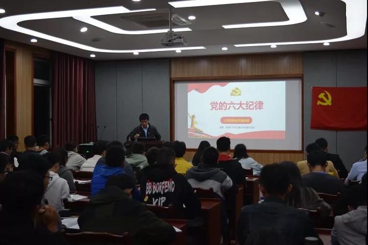11月20日,yl6776永利集团纪委纪检员宋贤东在电气楼403教室为电气学院分党校第39期党课培训班讲授以“重走党纪发展道路,解读党的六大纪律”为主题的党课。