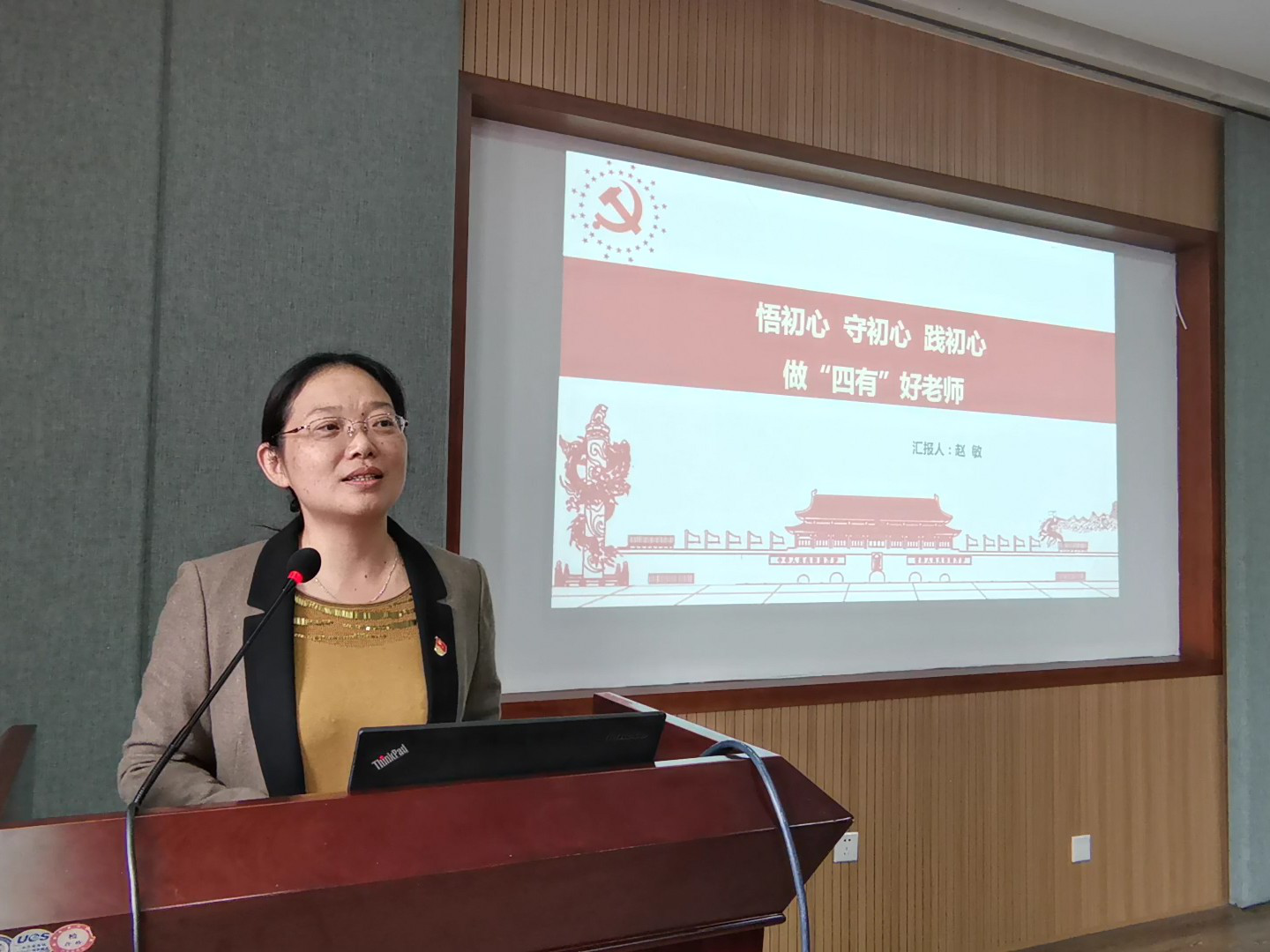 赵敏要求教工党员要切实提高思想觉悟,争做有理想信念、有道德情操、有扎实学识、有人爱之心的“四有”好老师。“她指出,习近平总书记的“时代之问”,是当代高校教师追溯初心的最好依据,教育系统要想解决“培养什么人、怎样培养人、为谁培养人”这一根本问题,就必须以习近平新时代中国特色社会主义思想为指导,坚持把立德树人的成效作为检验学校一切工作的根本标准,坚持马克思主义指导地位,把党对教育事业的全面领导贯彻好、落实好。