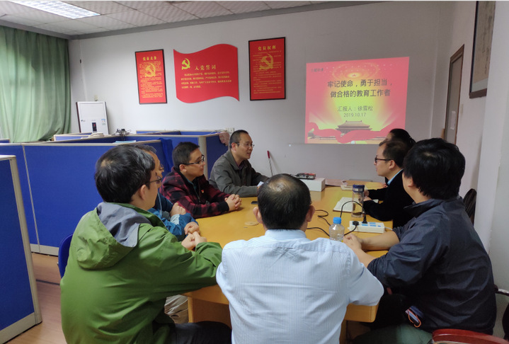 为深入学习贯彻习近平总书记在“不忘初心、牢记使命”主题教育工作会议上的重要讲话精神,扎实推进“不忘初心、牢记使命”主题教育。10月17日,我院副院长徐雪松以“不忘初心、牢记使命,争做合格的人民教师”为题,为全院的教职工党员讲授主题党课。