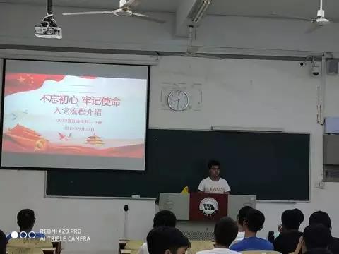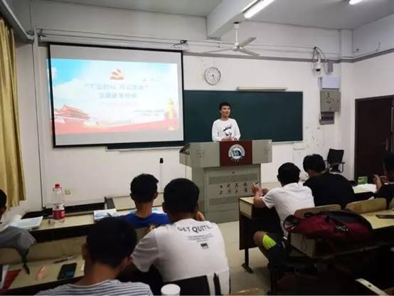 “年满十八岁的中国工人、农民、军人、知识分子和其他社会阶层的先进分子,承认党的纲领和章程……可以申请加入中国共产党。”这是19级新生带班学生党员吴世晟正在为新生普及党的基础知识,端正新生的入党动机,为新生向党组织积极靠拢提供正确的方向。
