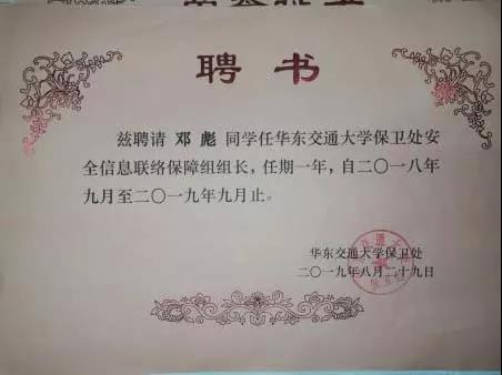 邓彪,男,中共预备党员,曾任校保卫处安联组组长、班级学习委员,是自动化学生党支部的一员。他是在学习上积极进取、奋发图强的探索者,他是以实际行动践行服务的志愿服务者,理论结合实践的行动派;他更是一名中共预备党员,党员先锋精神的执行者,在学术科研、学生工作、志愿服务等多方面表现突出。