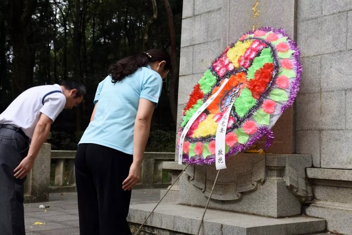 来到方志敏烈士墓前,这片净土在苍松翠柏的映衬下显得格外庄严肃穆。院党委书记赵敏同志、副院长徐雪松同志代表全体党员同志向无产阶级革命家、军事家方志敏烈士敬献花圈,全体党员同志向方志敏烈士默哀、鞠躬。