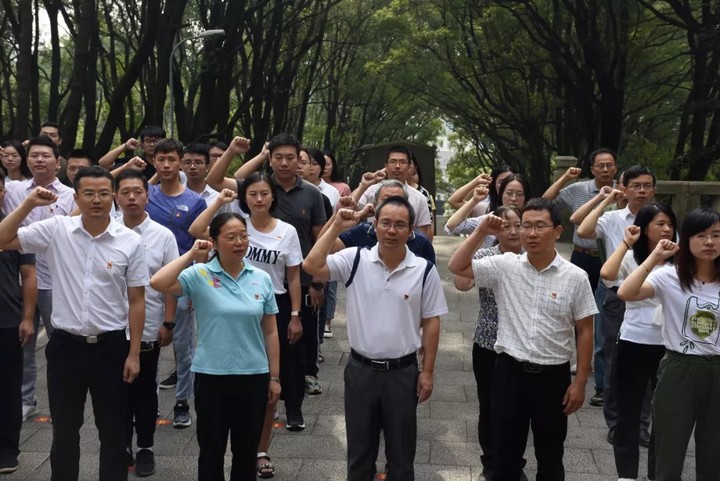 祭奠结束,院党委书记赵敏同志领誓,带领全体党员同志重温入党誓词。举起的右手,是一份党员的责任,喊出的誓词,更是不变初心的映照。革命斗争年代,革命烈士们为了理想信念、真理信仰抛头颅洒热血,用鲜血和生命克服了革命“创业”征途的艰难险阻。在和平年代,我们要守好入党初心,传承革命先烈们大无畏的斗争精神,以实际行动诠释“守成”的决心和对党的忠心。
