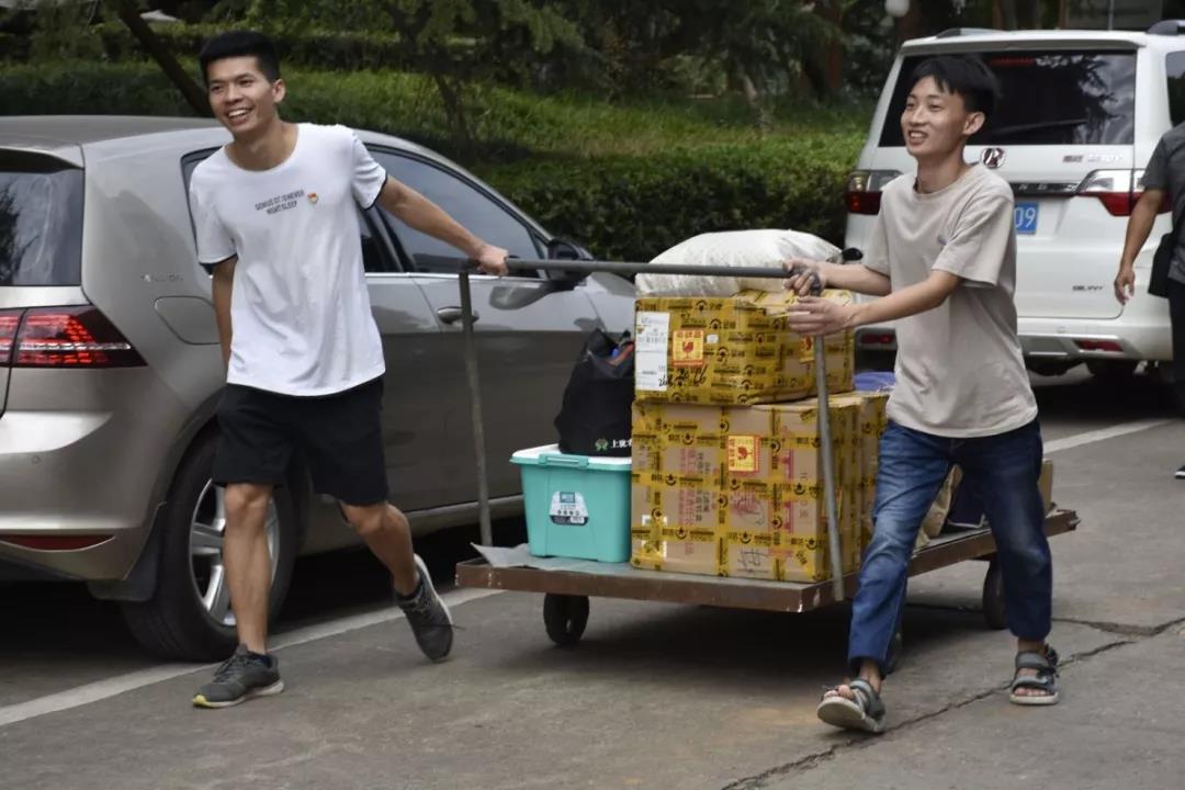 来到学23栋,我们的19级新生带班党员就已经早早等候在那里了。他们为新生发放军训服,为之后的军训工作做准备,帮助他们把行李搬运到宿舍。