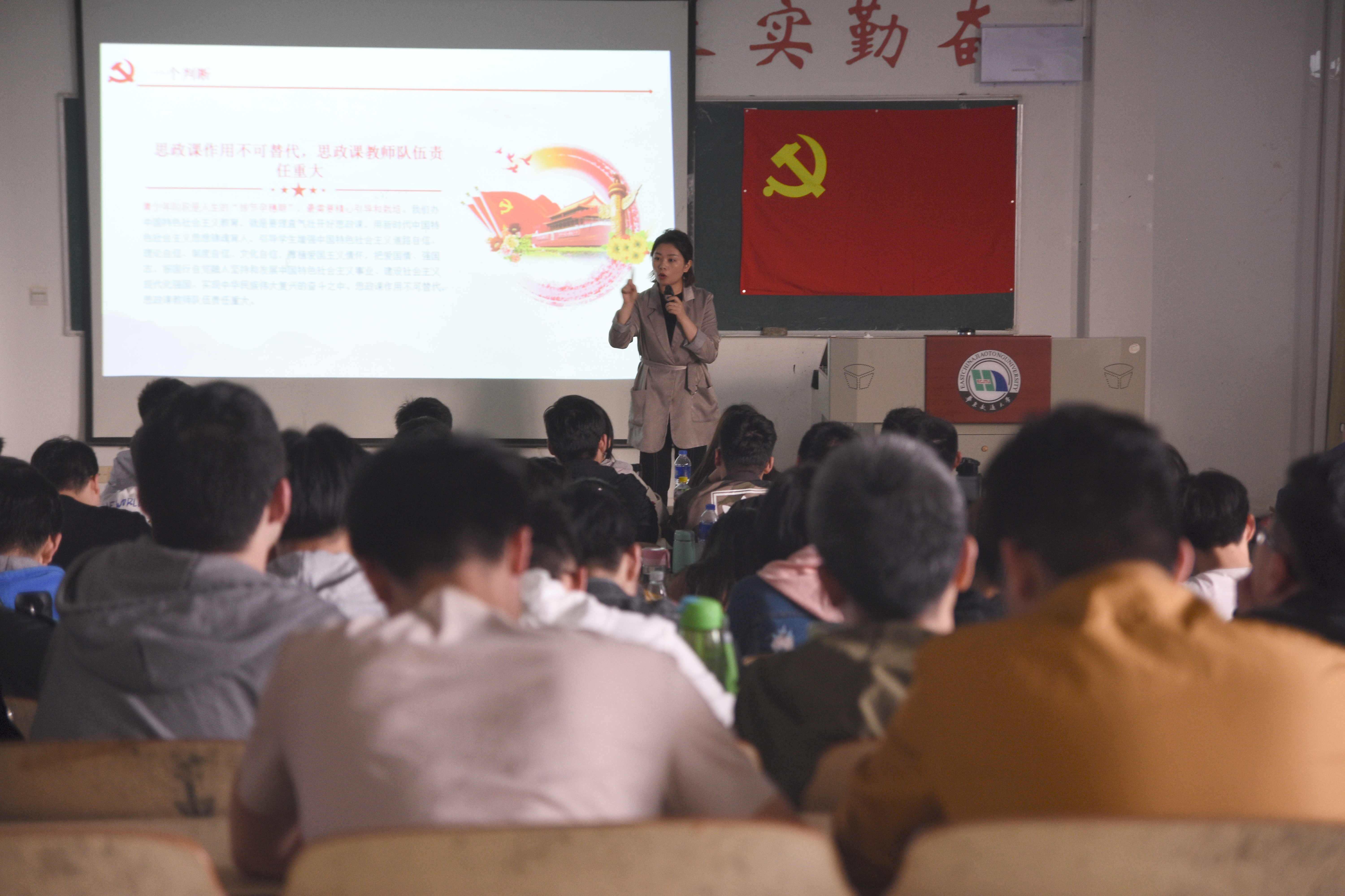 上课伊始,易修政老师以“教育是国之大计、党之大计”为切入点,接着以党和国家事业发展全局的战略高度,系统总结了我国教育事业发展的成就与经验,深刻分析了现阶段大部分学子对于思政课的态度,指出来思政教育工作面临的新形势新任务。