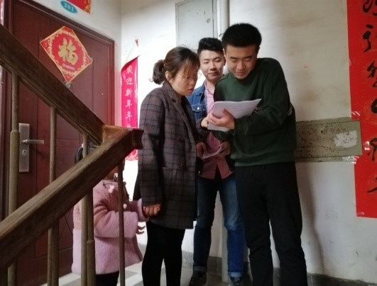 我们的党员同志热情地和住户居民进行交流,聆听他们对近年来生活变好的喜悦,也记录他们生活中还需进一步完善的需求。对于年纪大且听力不够好的老人,我们逐词逐句地讲述我们调查的问题,也耐心去听他们的回答。