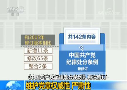 新修订的《中国共产党纪律处分条例》总结经验、巩固成果、与时俱进,对党的纪律进行了全面完善、深入细化和科学规范,划出了各级党组织和党员干部不可触碰的底线、红线。真正把从严管党治党伟大实践成果转化为全党必须共同遵守的纪律要求,进一步把党规党纪的权威性、严肃性在全党牢牢树立起来。彰显了我们党坚定不移全面推进从严治党、保持反腐败斗争压倒性态势的坚强决心。