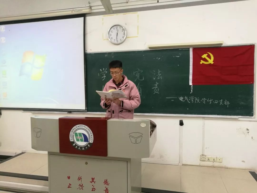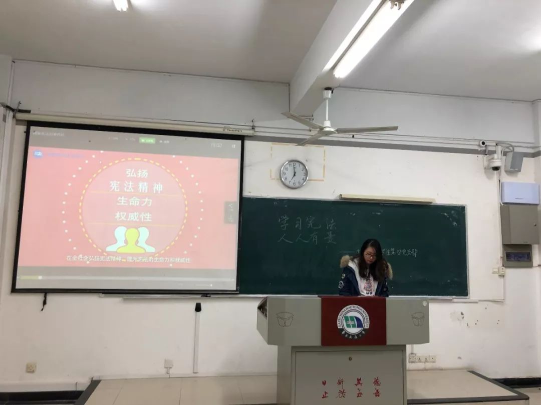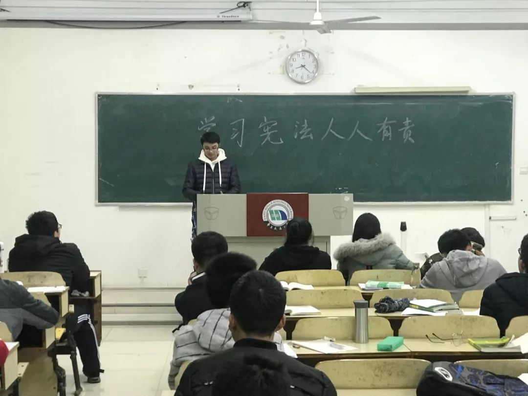 集中学习结束后,学生第四党支部带班党员在新生班级,以主题班会的形式组织学习、加强宣传、传递宪法精神,使学生们更加明确自己的权利和义务,能够充分认识我国的国家性质和基本制度,增强学生们的宪法意识。