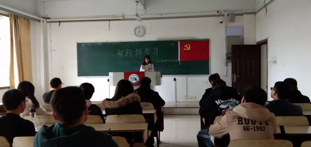 学生第四党支部则开展了以“学习时代楷模精神”的主题演讲活动。“作为新时代大学生党员,我们可以看到,即便是在和平年代的当今中国,也还是有一批共产党员信仰坚定,于平凡中显伟大,于危难处显精神;他们也有自己的人生,有自己的家庭,有自己的理想,但是在危难时刻他们毫不犹豫站了出来,用实际行动诠释了共产党员对党忠诚、恪尽职守、不怕牺牲的优秀品格,用宝贵生命践行了共产党员‘随时准备为党和人民牺牲一切’的初心和誓言。”
