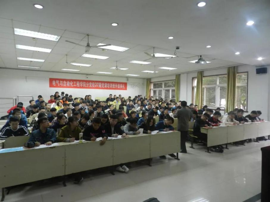 2018年11月8日下午16时,yl6776永利集团电气学院分党校第37期党课培训开班典礼暨培训第一讲在教10栋113教室顺利举行。校党校校长、宣传部副部长曾友田,电气学院党委副书记王巍到场出席。电气学院党委组织员武婷婷主持本次开班典礼。