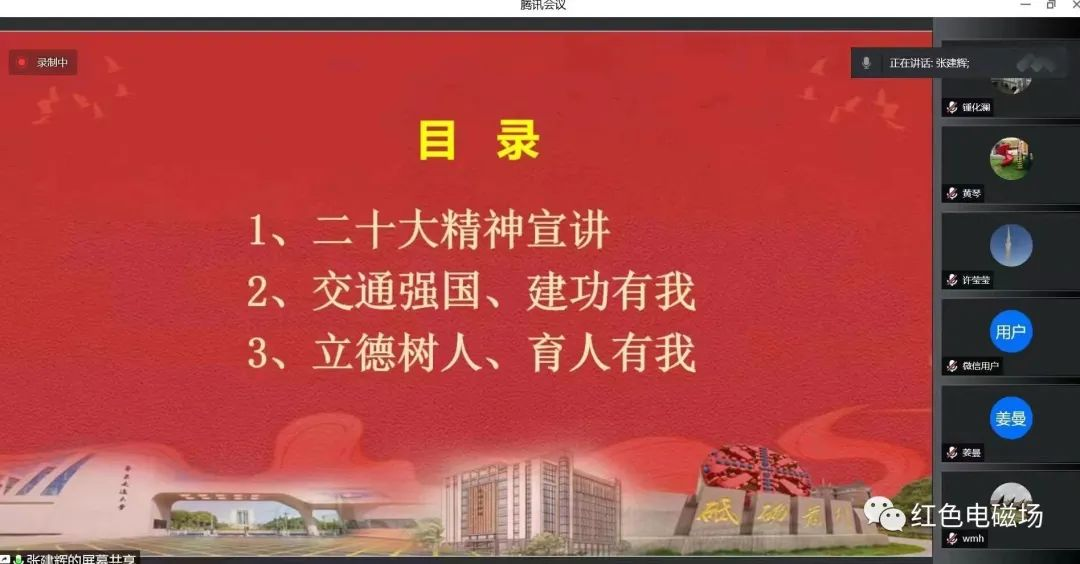 12月26日上午,学院邀请校党的二十大精神博士宣讲团成员张建辉老师到电基础教工支部开展宣讲,本次宣讲采用线上方式进行。