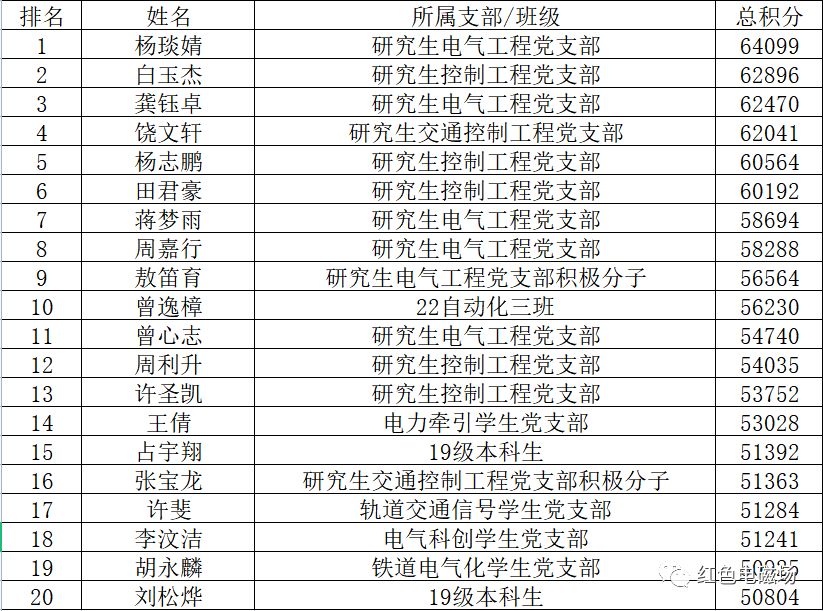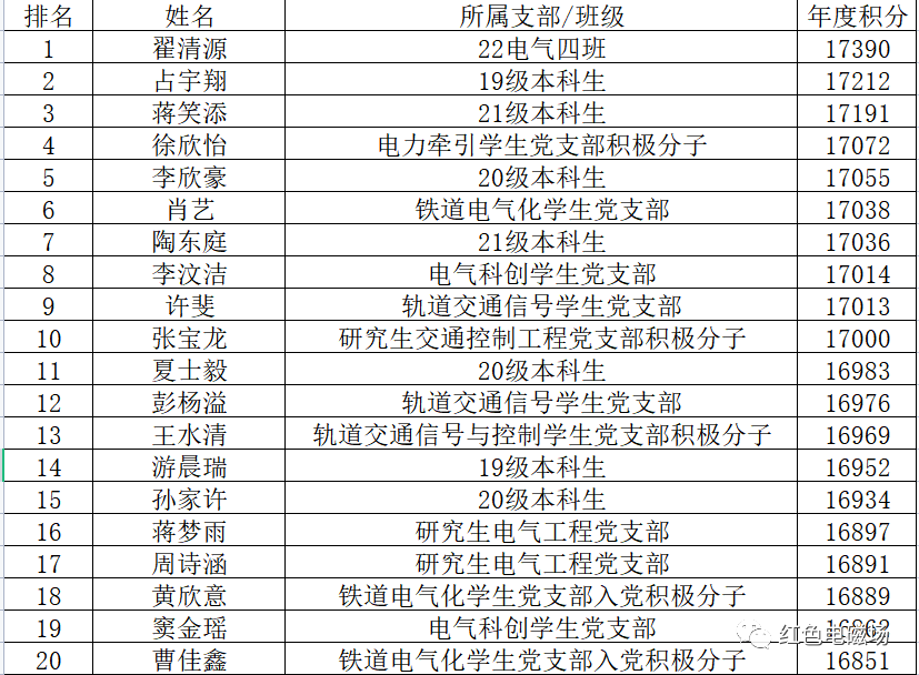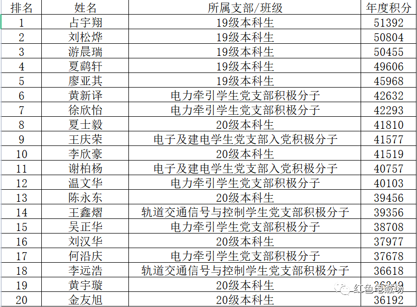 其余本科生及积极分子排名前二十(19级仅取前5)
