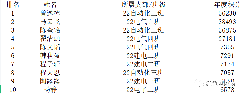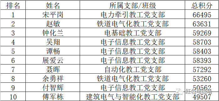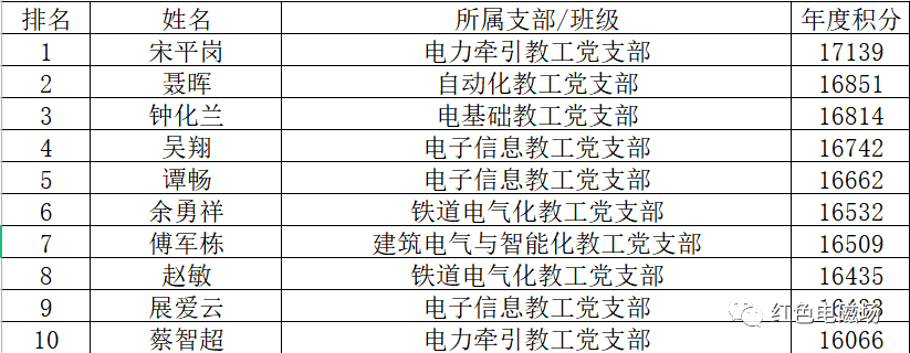 教工年度积分排名前十