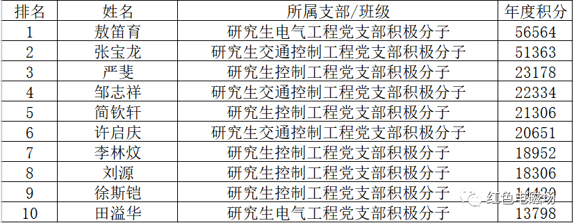 研究生积极分子总积分前十