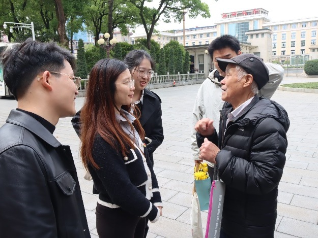 活动伊始,我院师生代表与到场烈士后人进行交流。烈士后人们向学院师生分享他们的先辈在革命战争中的英雄事迹以及1949年后他们在烈士子弟学校的经历,用真人真事重现书本、记录中的红色故事,用真心真情寄语青年,传承红色基因、珍惜眼前时代、努力开拓奋进,为社会主义现代化建设贡献青春力量。
