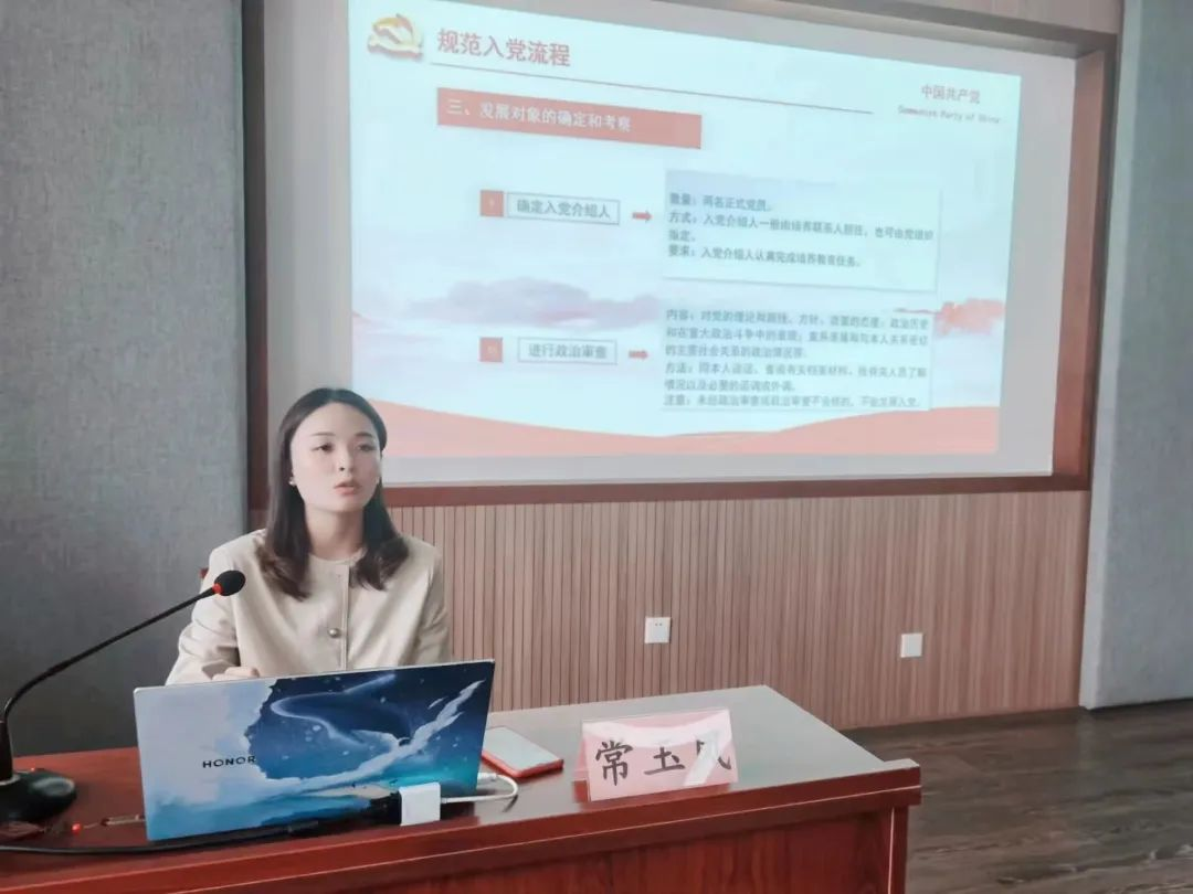 常玉凤老师强调,党组织吸收申请入党的同志入党,要严格履行入党手续,这是一项严肃的政治工作,也是党组织做好发展党员工作的重要环节。在这一点上,常玉凤老师详细地向学员们讲解了规范的入党流程,并着重指出了往年发展党员过程中存在的问题以做到切实防范。
