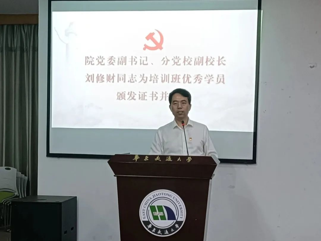 刘修财为培训班优秀学员颁发证书并讲话。他表示,党课培训班的学员们经过党课学习,要以更高的标准品格要求自己,无论在寝室卫生方面、体育方面还是班级建设方面都要做好表率作用,要多加沟通了解,积极主动参与其中,在思想和行动上要有所提高,既要做好自己,也能够带动他人。