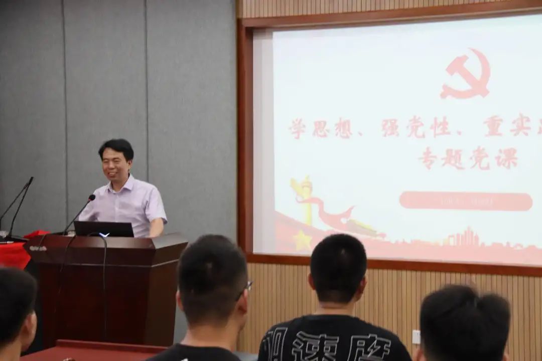 6月2日中午,学院党委副书记刘修财以“学思想、强党性、重实践、建新功”为题,为电气科创学生党支部全体党员和21级建电专业学生讲授专题党课。