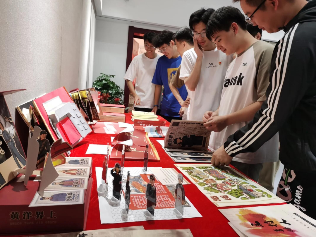 随后,支部成员一起去参观第三届江西高校大学生红色文化论坛暨“红色走读”优秀作品展。步入展厅,陈列的是来自全省不同高校的68个团队创作的优秀获奖作品,艺术表现形式丰富,主要有文创作品、书法、书籍、模型、剪纸、动漫、绘画、影像等。这些作品集中展示了江西高校大学生在“红色走读”中激发的智慧和创意,有力彰显了青年学子的爱国之情、强国之志,生动传达着他们争做担当民族复兴大任的时代新人的真挚情感。