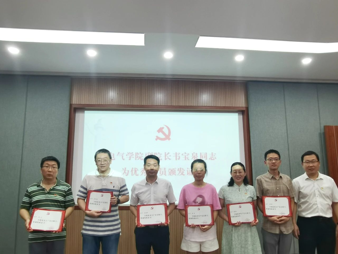 会议由院长李泽文宣读表彰名单,院党委书记赵敏,副院长徐雪松及韦宝泉分别给电子信息教工党支部等3个学校先进基层党组织以及张建辉、付雅婷等17位学校优秀共产党员、优秀党务工作者颁发荣誉证书和奖牌。电力牵引教工党支部党员、“两优一先”代表展爱云做典型发言,分享经验体会。
