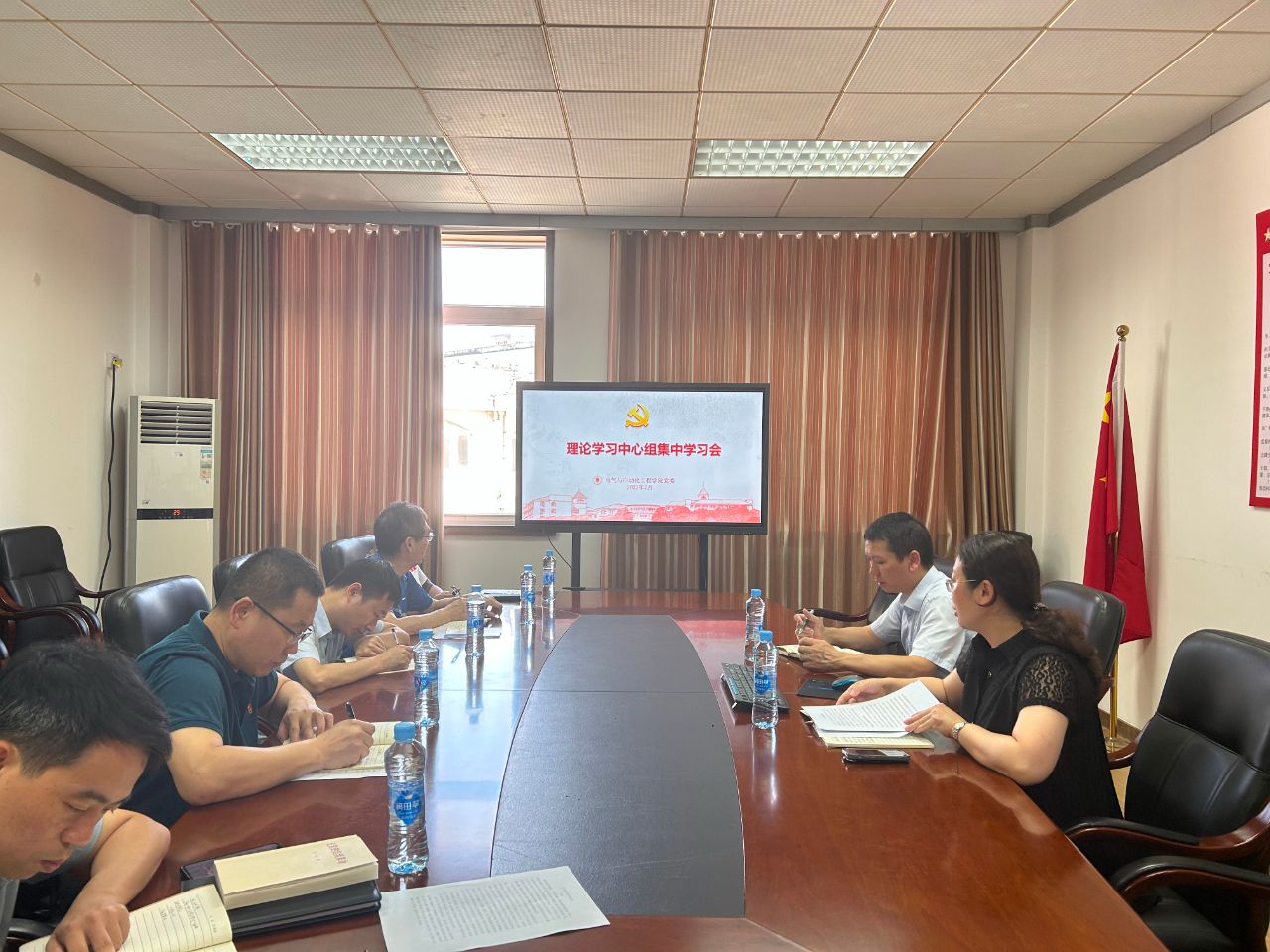 7月13日,电气学院党委理论学习中心组举行2023年第十四次集体学习会,集中学习《中国共产党章程》、《论党的自我革命》、习近平总书记关于坚决防止和克服形式主义的重要指示精神、关于以学正风的重要讲话精神。集体学习会由院党委书记赵敏主持,全体中心组成员参加。