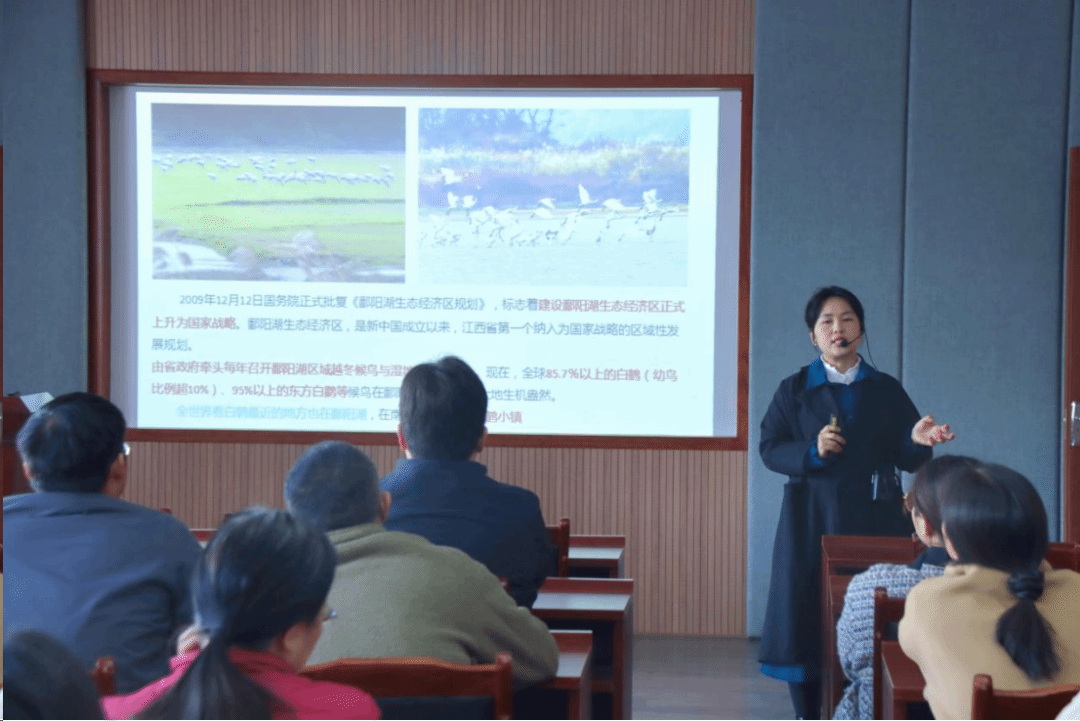 张静以《赣鄱扬帆风正劲,高质量发展谱新篇》为题开展宣讲,从三赴江西意殷切、立足特色扬优势、勇立潮头谱新篇三个方面详细阐释了习近平总书记考察江西的重大意义、习近平总书记对江西发展提出的战略定位和目标要求、以及习近平总书记对进一步推动长江经济带高质量发展提出的重要要求等,报告内涵丰富、分析透彻,为准确贯彻落实习近平总书记考察江西重要讲话精神提供了学习指南。