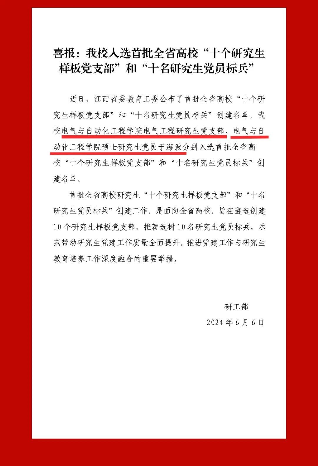 喜报 | 我院入选首批全省高校“十个研究生样板党支部”和“十名研究生党员标兵”