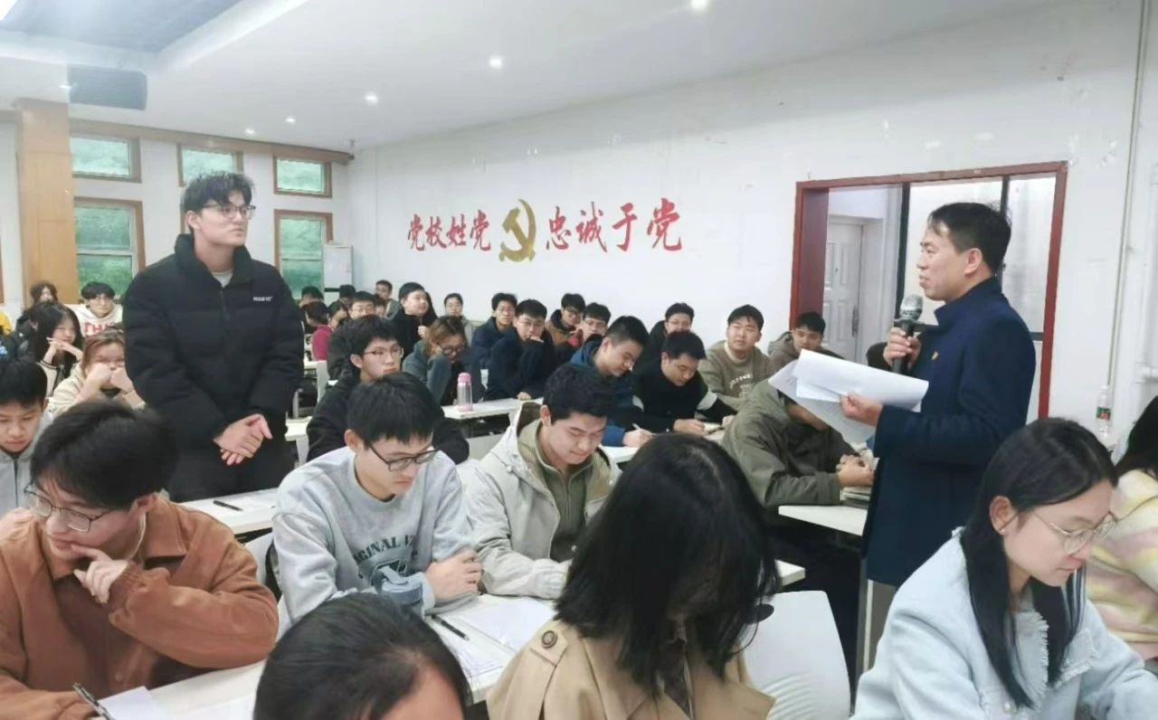 刘修财首先结合自身工作经历和学院近几年学生工作情况,强调了当前就业形势严峻,要求同学们要有危机意识,要深刻认识到人生规划的重要性,提升个人能力。他就学院大型活动近况的了解以及入党积极分子应有的觉悟和行动对大家进行了提问,并表示学员们应认真学习、思考,不断提升自己,在思想上力求进步,在行为上积极表率,不忘初心、牢记使命,实现中华民族伟大复兴的中国梦。