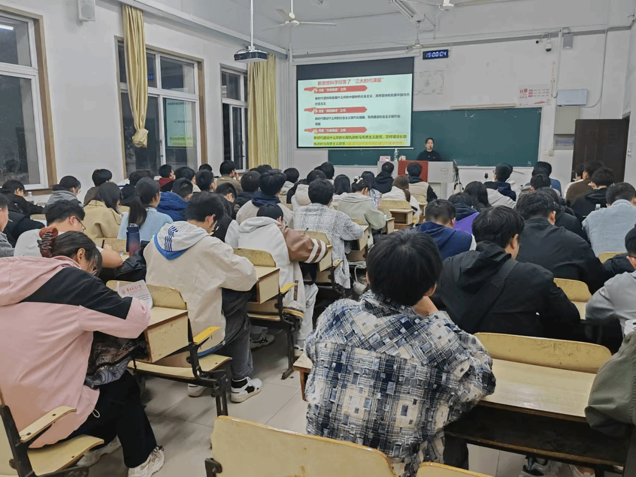 2024年11月20日,电气学院分党校第二十三期发展对象培训党课在教10栋104教室举行,马克思主义学院张静老师为党课学员们讲授党课第四讲—以自我革命精神推进全面从严治党。