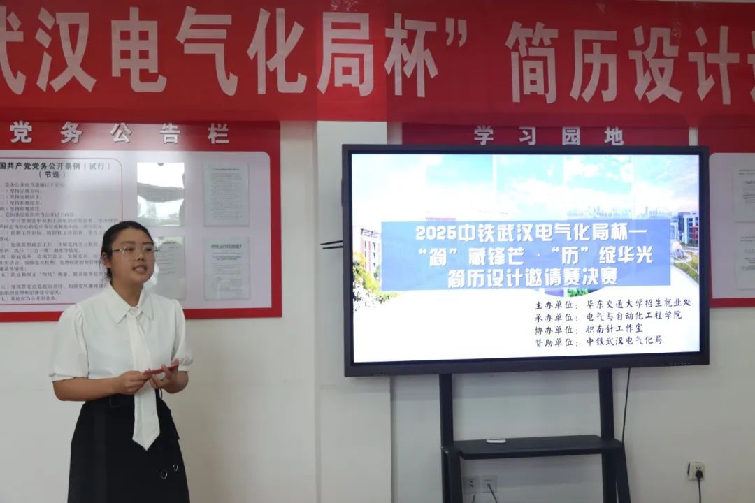 为切实增强学生的就业意识,全面提升其求职竞争力,5月28日下午,电气学院在电气楼318会议室成功举办了 “简” 藏锋芒∙“历” 绽华光“中铁武汉电气化局杯”简历设计邀请赛决赛。