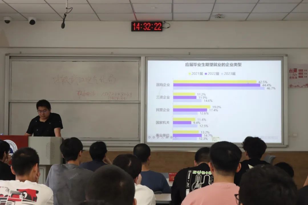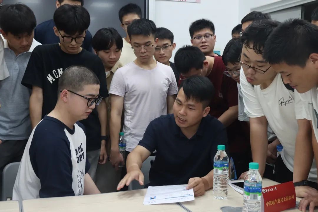 6 月 12 日下午,学院于教 25 栋三楼成功举办 2022 级考研学生专场招聘会暨暑期实习活动。院党委副书记刘修财,院就业干事彭世惠、22 级辅导员到场参加。本次招聘会汇聚行业优质资源,中国通号建设集团、中铁武汉电气化局集团有限公司、中铁电气化局集团有限公司、中国电建集团江西省电力设计院有限公司、华勤技术股份有限公司、深圳麦格米特电气股份有限公司、广州市邦普电脑技术开发有限公司、天津凯发电气股份有限公司、深圳汇义科技有限公司、南昌铁路勘测设计院有限责任公司等十余家知名企业携岗位参会。