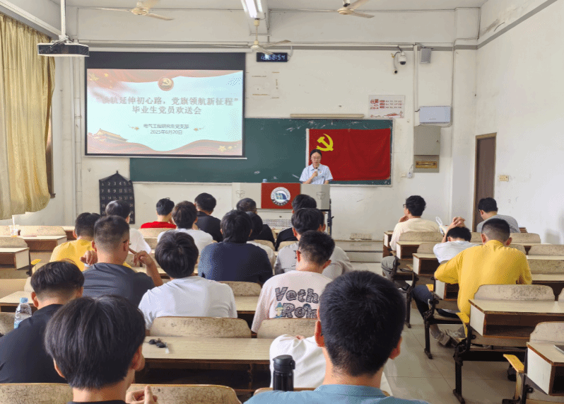 六月风起,骊歌悠扬,又是一年盛夏时节,又是一场离别之约。为表达对即将开启新征程的毕业生党员祝福与期许,电气工程研究生党支部于6月20日举办主题为“铁轨延伸初心路,党旗领航新征程”毕业生党员欢送会。本次活动由支部宣传委员方欣同志主持,全体在校支部党员参加。