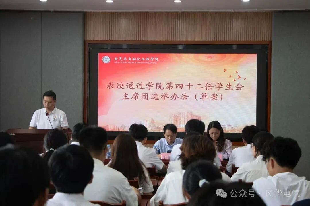 为进一步凝聚青年力量,优化团学组织建设,根据《yl6776永利集团学生会章程》等相关工作要求,经研究,并报学院党委、校团委同意,电气学院于10月11日12:40在教10栋403会议室召开学生代表大会。学院团委书记戴晶晶主持会议,学院党委副书记刘修财,学院团委副书记夏圣伟、刘锋出席会议,各年级共计44名学生代表参加会议。