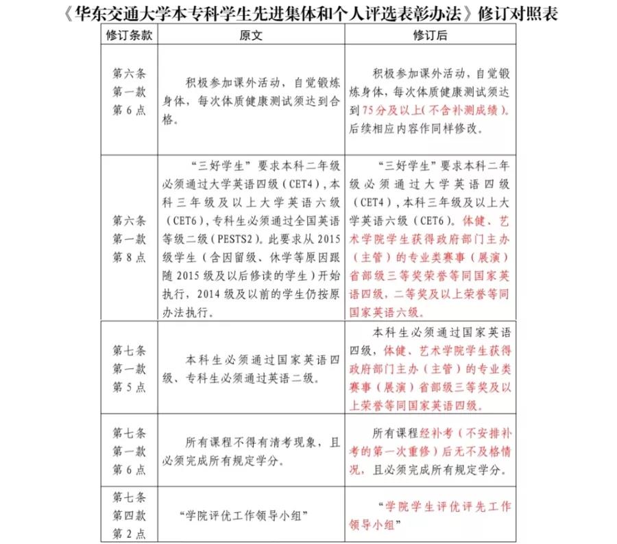 7.“三好学生”综合测评排名列班级前20%;“优秀学生干部”综合测评排名列班级前50%,且学生干部任职须在半年以上。