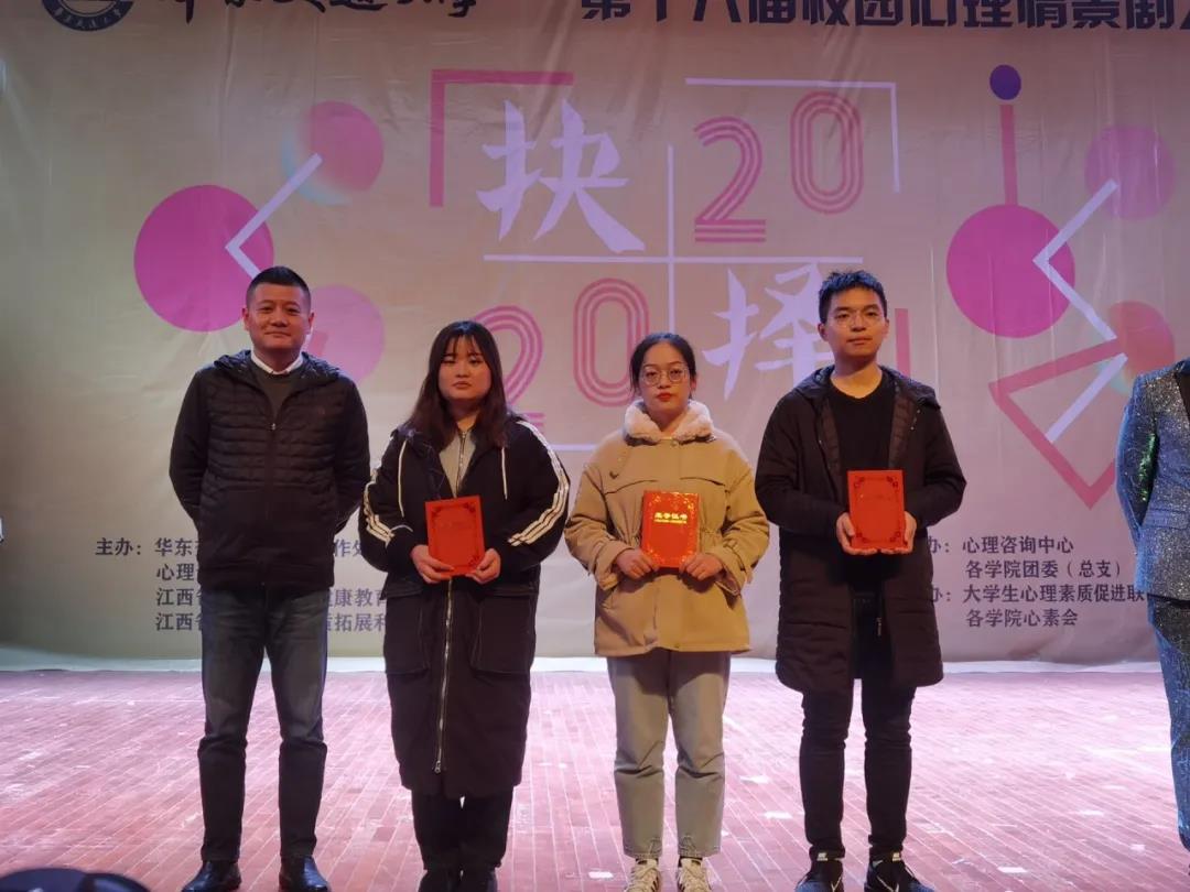 2020年11月28日晚,第十八届校园心理情景剧决赛在校南区礼堂举行,本次大赛的主题为“抉择”。七支优秀表演队伍分别从国、家、个人等角度向观众呈现出一幕幕在生活中面临的各种抉择,通过专家评委打分、原则加分、超时扣分等环节,我院代表队的优秀作品《润物无声》荣获第十八届校园心理情景剧决赛二等奖、最佳组织奖和舞台设计奖。