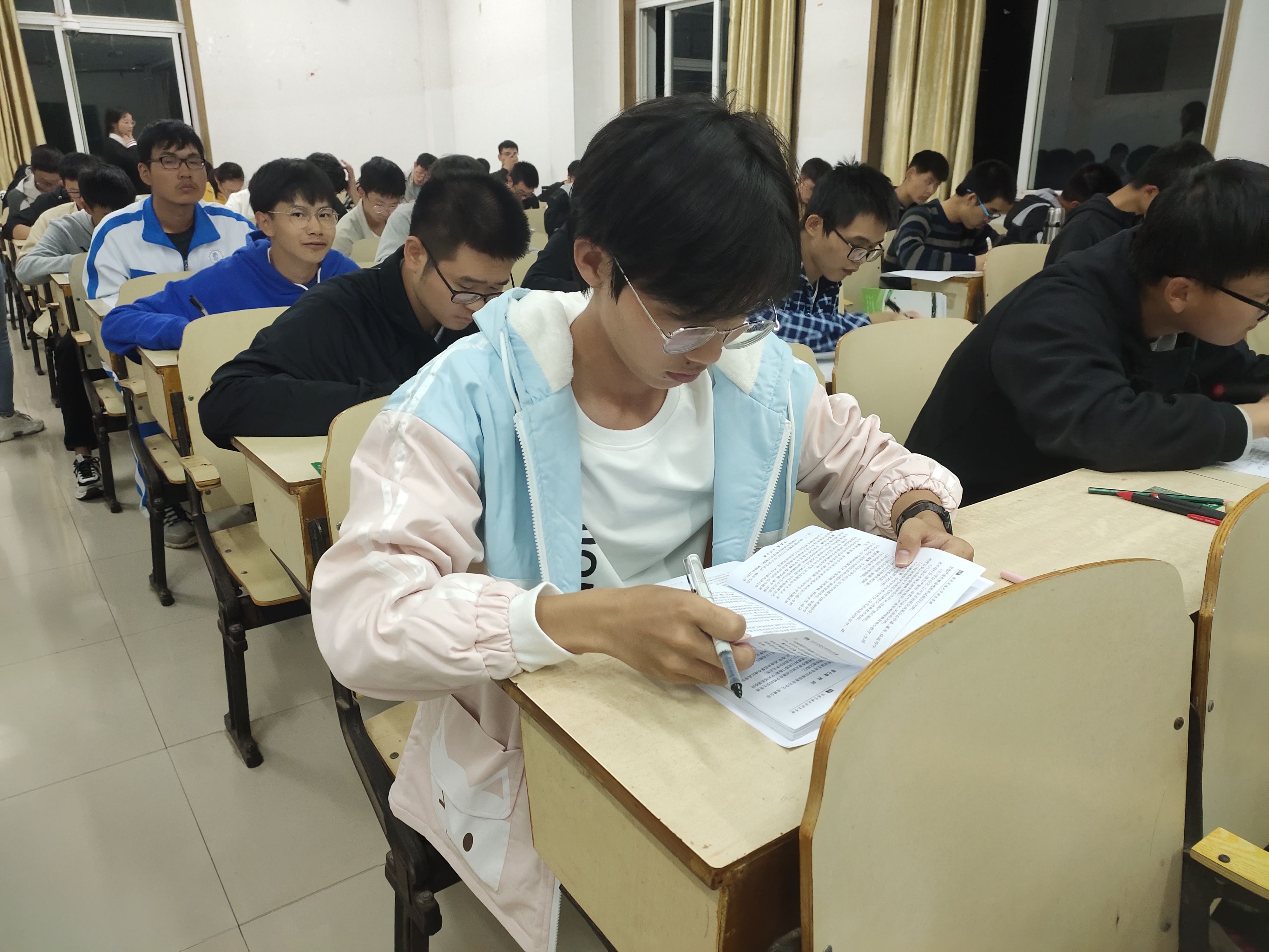 本次测验为开卷考试,时间为晚上7:00到9:00点,共计120分钟,试卷共有填空、选择以及简答三类题型,难度适中,目的是让全体同学都能详细了解学生手册中的内容,明确在校行为规范,以便更好的约束自己。试题中主要考查了同学们对普通高等学校学生管理规定、国家学生体质健康标准、yl6776永利集团学生违纪处分规定和奖学金制度实施办法等。监考人员严格公正监考,考生全神贯注认真答题,弘扬yl6776永利集团良好校风。